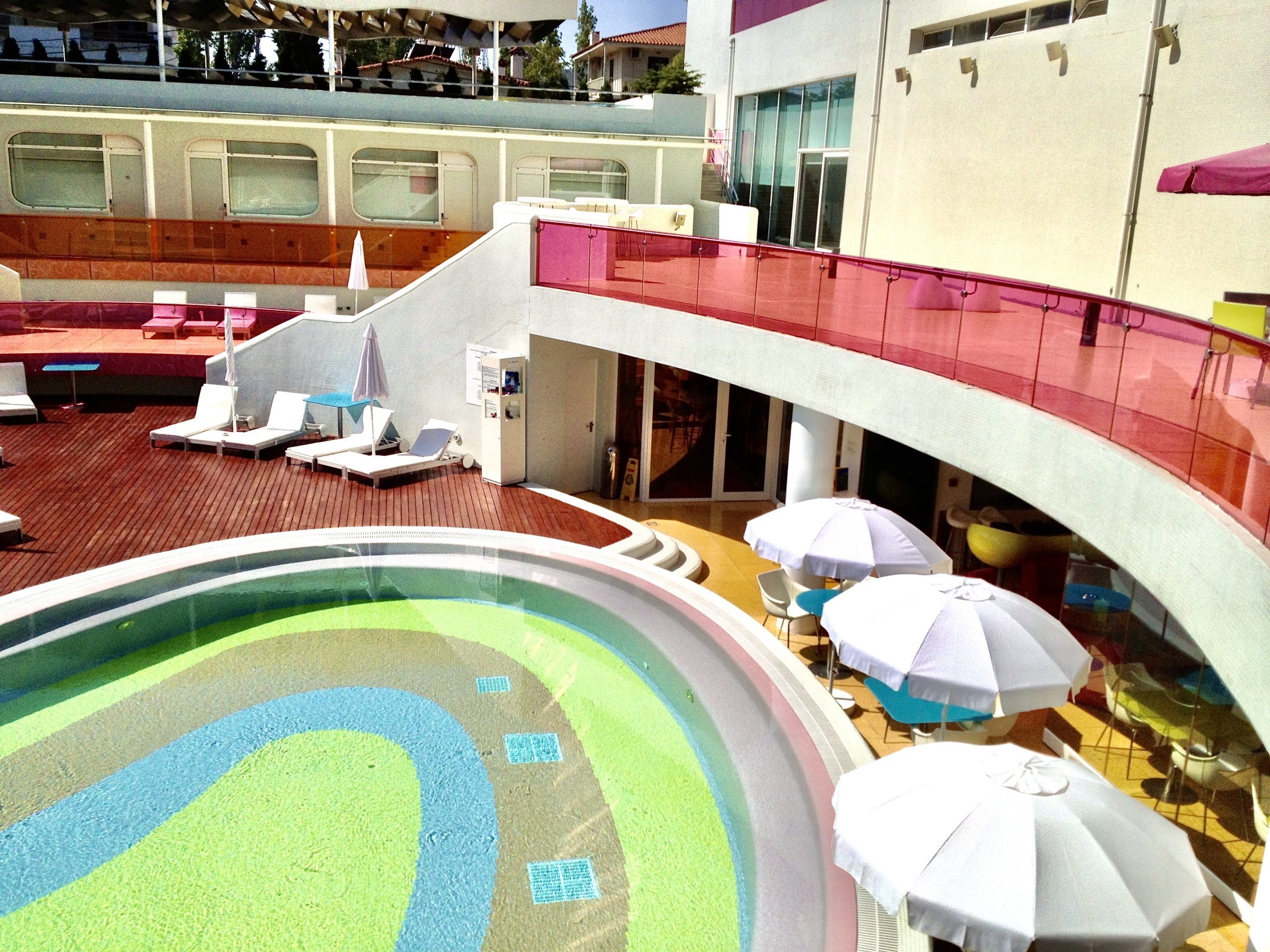 One of the first hotels I ever spent time at in the Athens area now feels like a colorful home away from home. I’ve stayed in many different room types over the years, but prefer the Pool Bungalow and the Penthouse Studio over the others. They may be slightly more expensive than the basic rooms, but they are worth the extra money for the experience. If you want to view the sun drenched action in and around the pool, I’d go with the Pool Bungalow, which is independent from the main building by the pool deck and also has a private garden.
